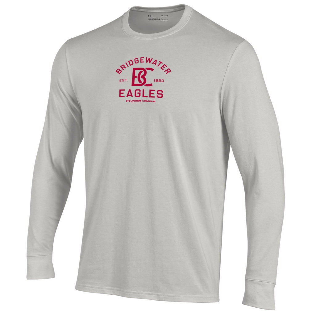 Under Armour Performance Cotton Long Sleeve Silver Tee with Front and Back Art